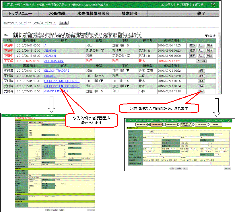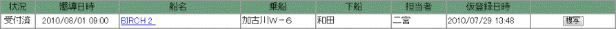 ・申請済みの水先依頼について、受理されたかどうかの確認ができます。 |