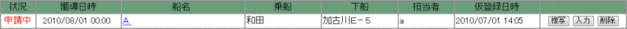 水先依頼の仮登録を行なった場合の状況です。受付審査前なので内容の訂正ができます。 |