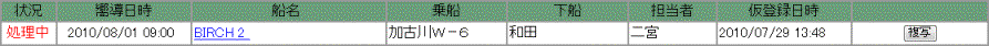 「複 写」 ボタンを押すとこの水先依頼を複写して、新しい水先依頼ができます。 |