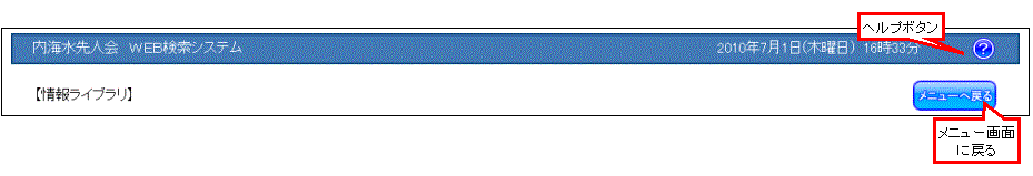 1.画面右上部にある、「メニュー」ボタンをクリックすると、メニュー画面に戻ります。 |