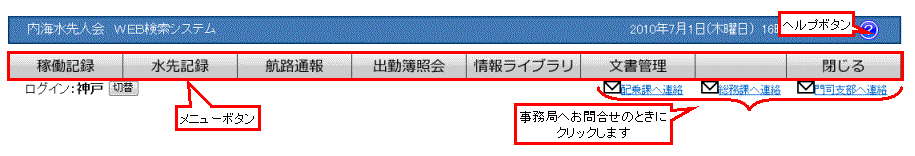 ログインユーザが修業生の場合、通常の水先人とは違ったメニューが表示されます。 |