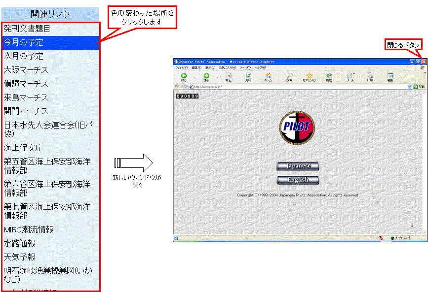 2.関連リンクの画面を閉じる時は、リンク先のウィンドウの「閉じる」ボタンを押してください。 |