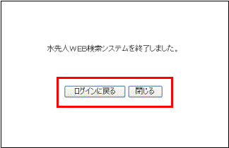 「閉じる」ボタンを押すと、「水先人WEB検索システムを終了しました。」という画面が表示されます。 |