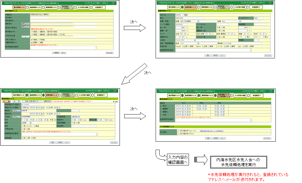 | 水先依頼の入力の流れ |