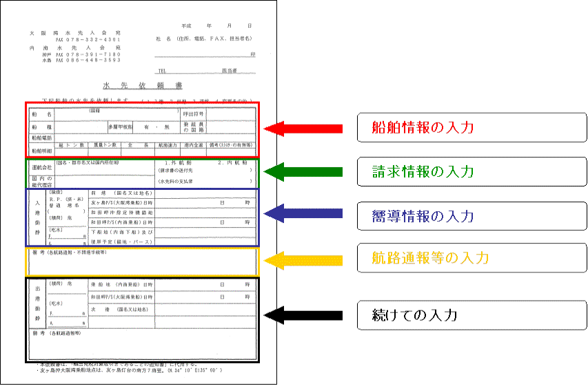 現在の水先依頼書とホームページの入力画面は下記のように対応しています。 |