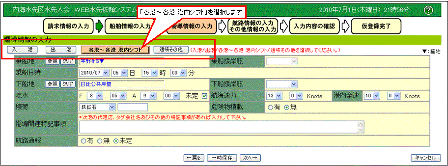 【3】[各港〜各港 港内シフト] の入力 |
