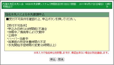 3.申込ボタンを押すと、申込が受理されます。 |