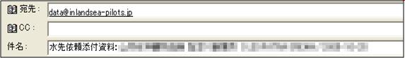 ※件名には、「水先依頼仮登録添付資料:」+ 「担当者@代理店名」+「船名」+「/乗船日付」 が自動編集されます。 |