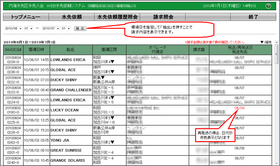 期間を指定して請求内容の確認を